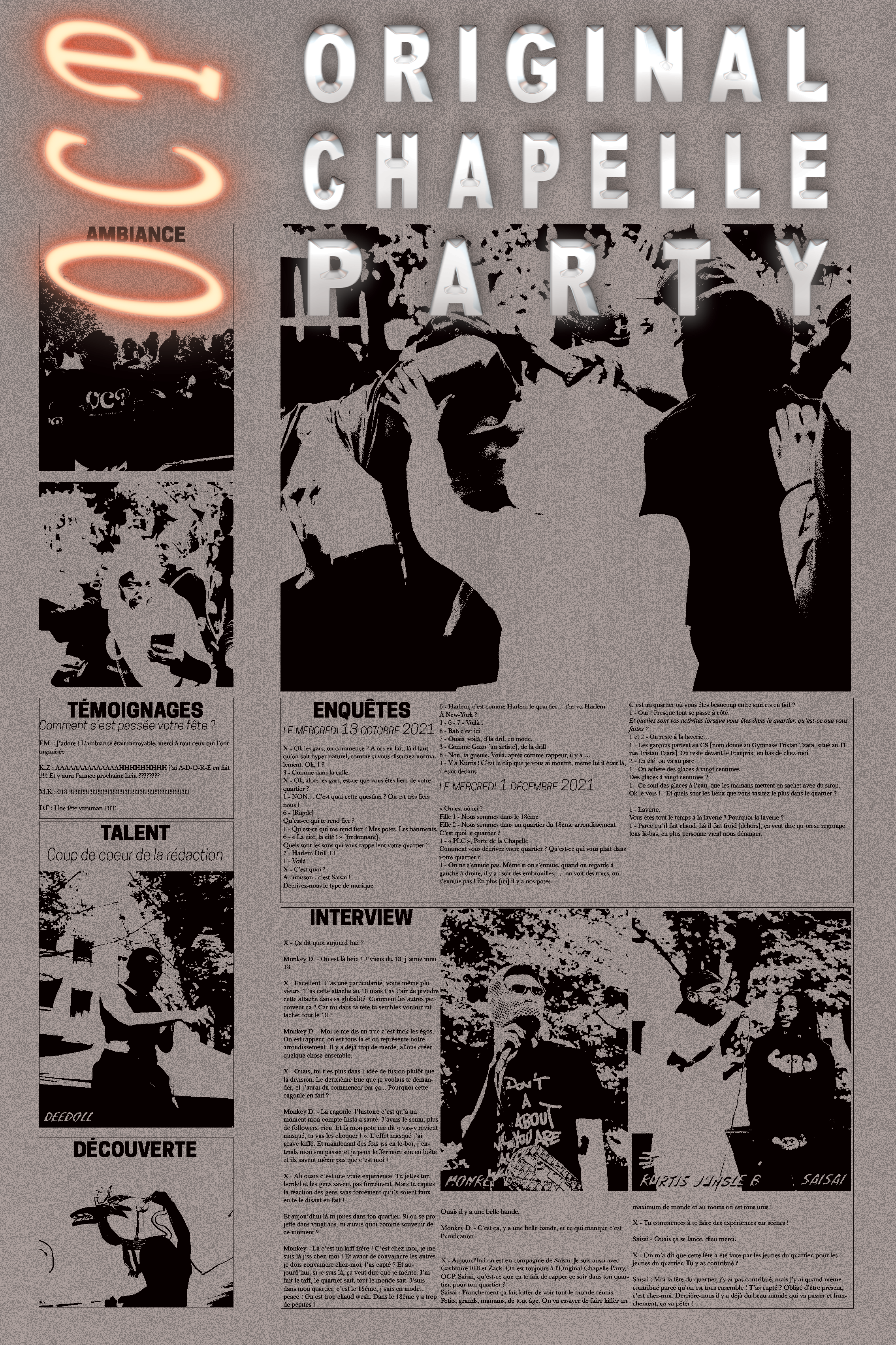 The project culminated in the first edition of the neighborhood block party, Original Chapelle Party.
